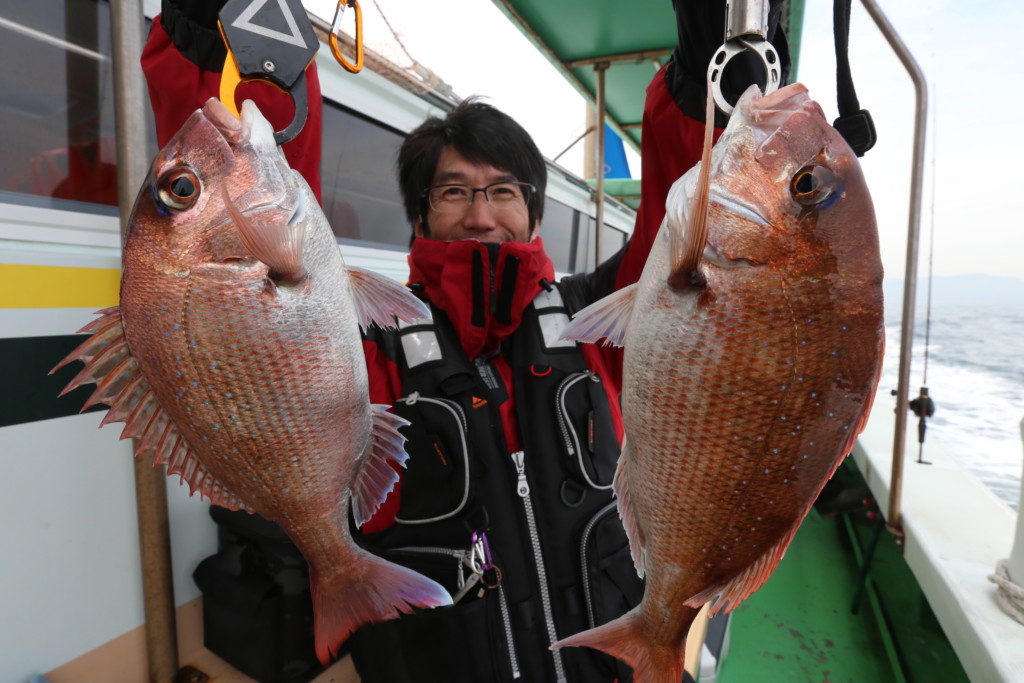 マダイを釣り上げた泉南の多田氏