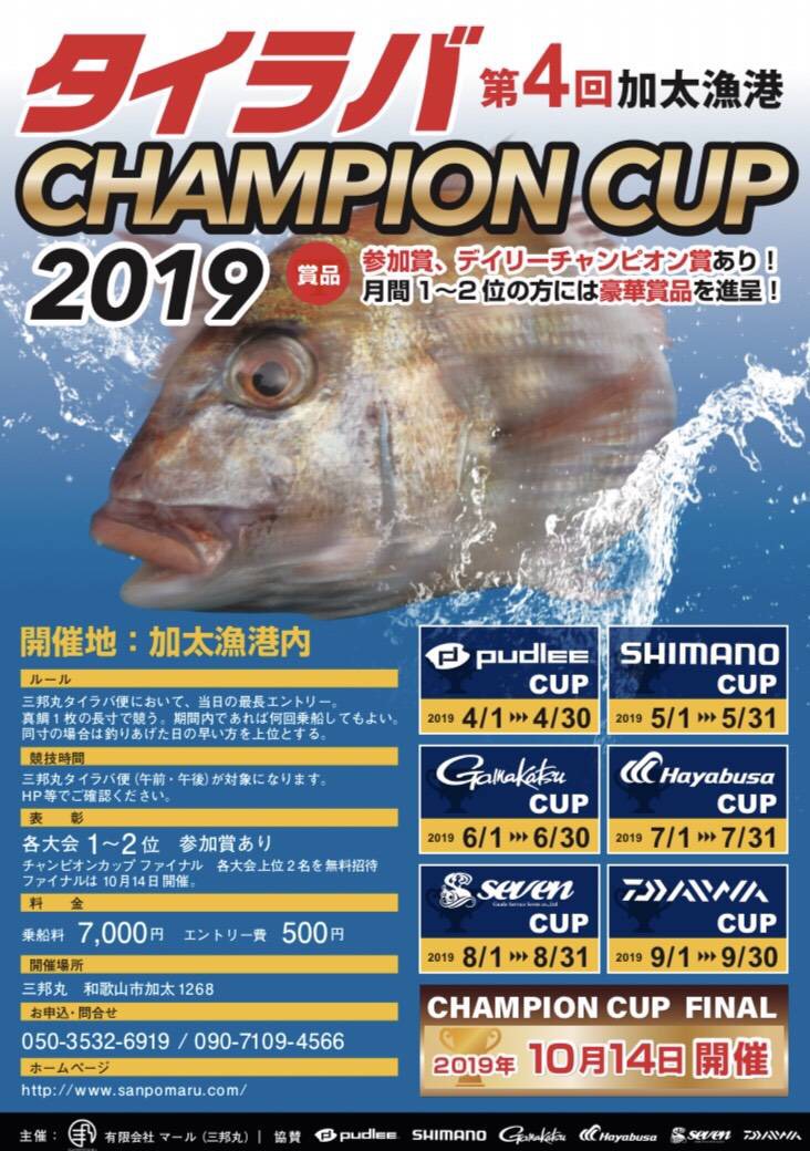 ちなみに、現在、三邦丸では「第4回タイラバチャンピオンカップ2019」を開催しています。詳細は三邦丸ホームページにてご覧ください。