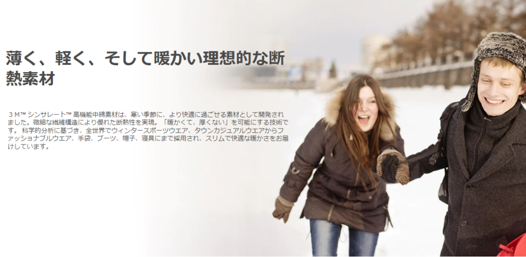 3M社が開発した「シンサレート」という素材の特長は薄く、軽く、暖かいということ。