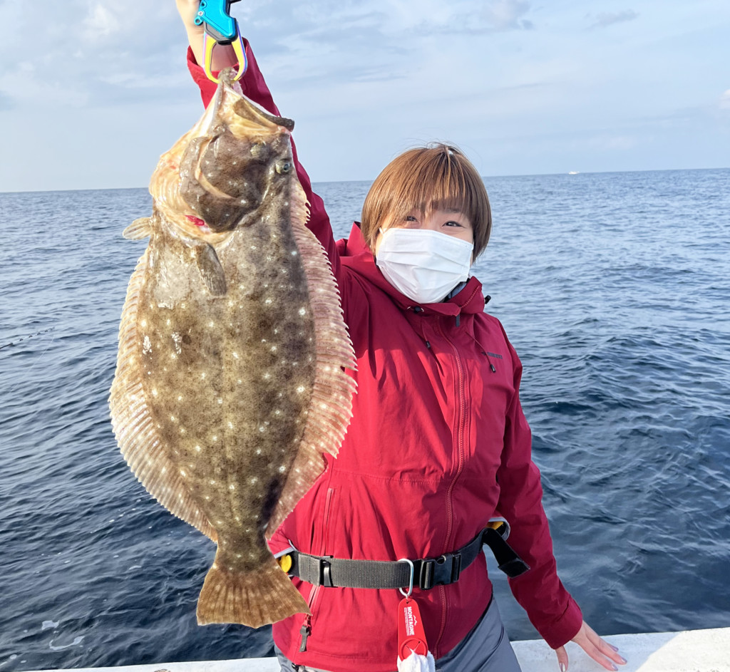 そんな中ですが、私の横の女性アングラーのロッドが突如、引き込まれました。皆が応援する中、上がってきた魚は、何とも大きなヒラメ! 羨ましい限りです!
