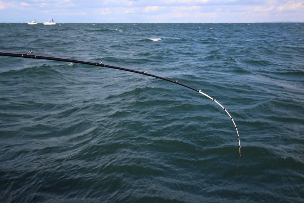 このノマセ釣り、アタってから掛けるタイミングが難しく、竿次第で釣果が変わることも…。