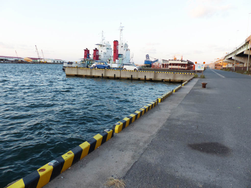 港内は広くとも、岸壁には資材や砂利置き場に貨物船、クレーン船などが発着するので、釣りができない場所が多い。