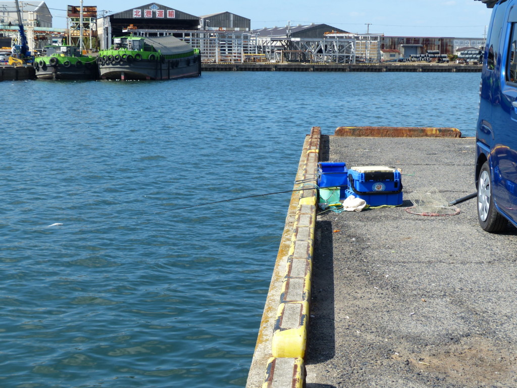 この西向きは、よくクレーン船やタグボートが係留されているので、そんな時は竿が出せない。