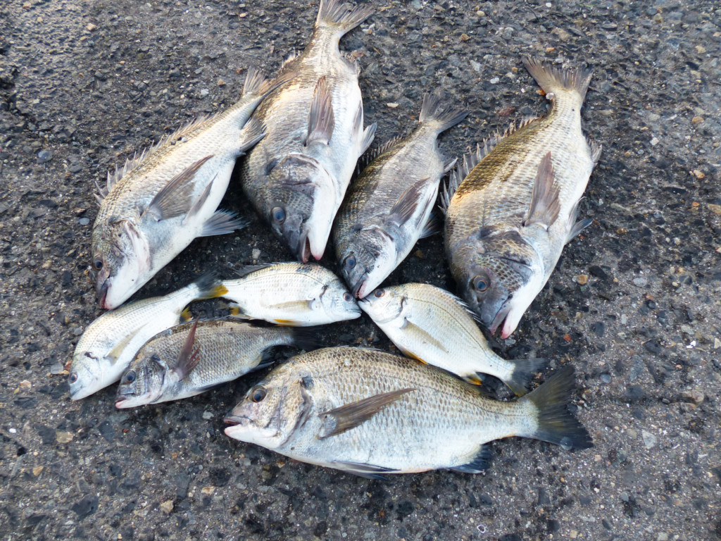 小チヌや小型のキビレが多いが、30~40cmの良型もまじり、2ケタ釣果も望める。
