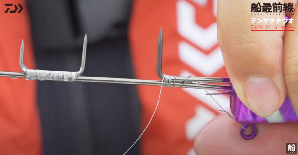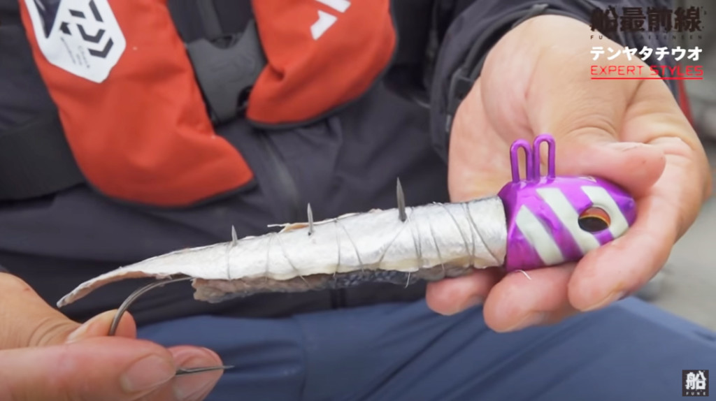 この映像では、テンヤへのエサの巻き方も分かりやすく解説しています。