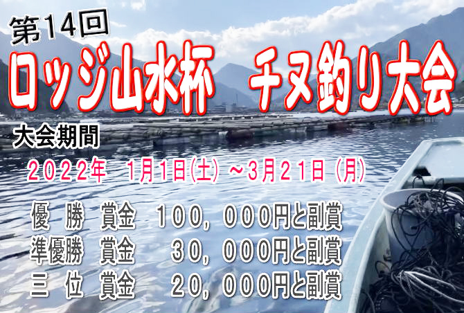 ◆審査方法:期間中にロッジ山水で釣った実寸45cm以上の真チヌ2尾の合計寸法による審査