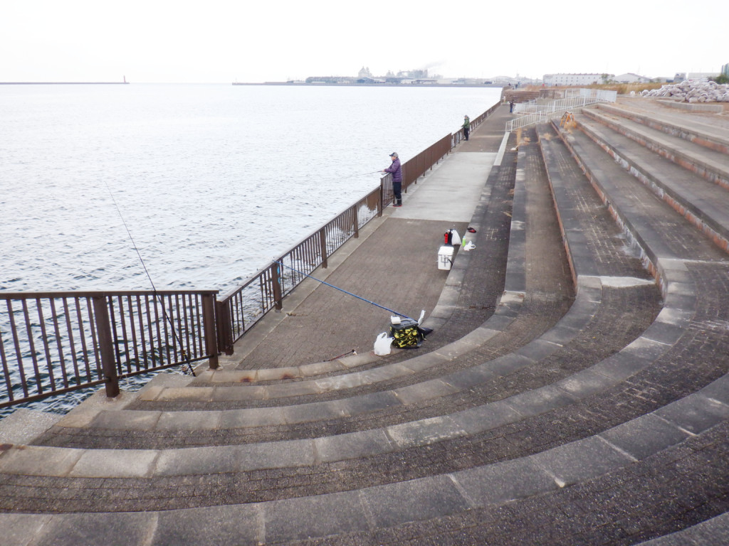 10時頃に行くと、2人がサヨリ釣りをしていた。釣況を聞くと、1人は「まだ釣れていません」と言う。