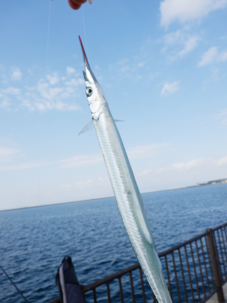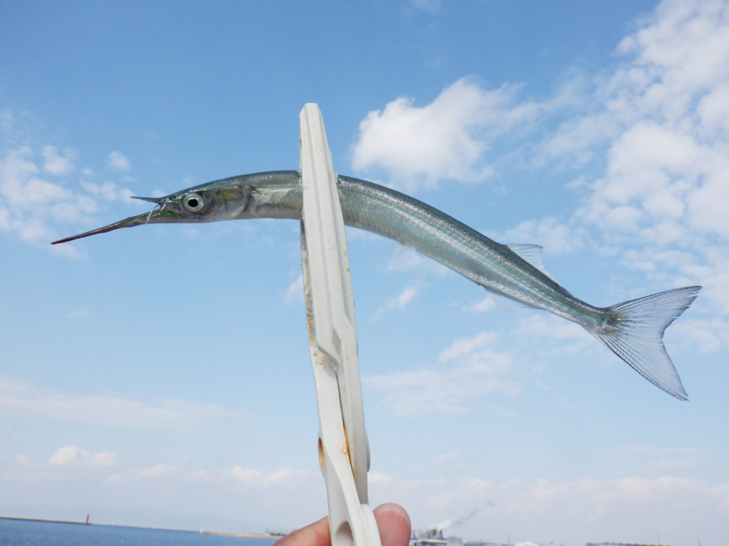 もう1人は、「食いはよくないが、1尾釣った」と言って見せてくれたのが、何と35cmはありそうな大きなサヨリだった。