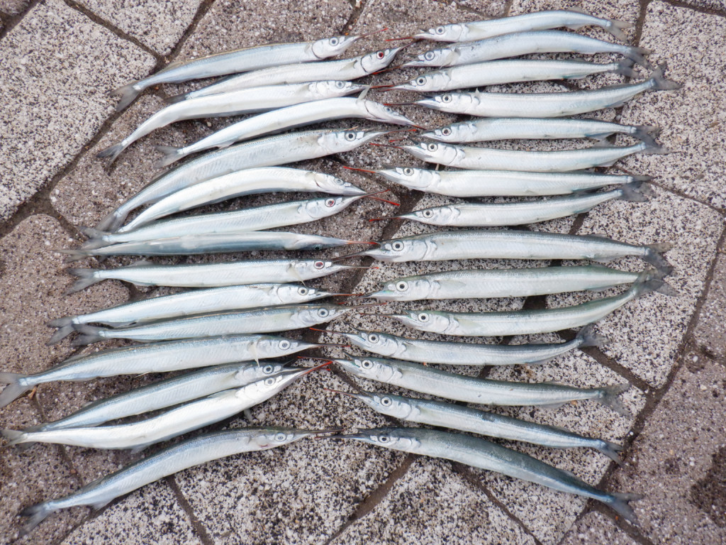 サヨリ釣りはそろそろ終盤で、いつまで釣れ続くか分からないが、好天が続く間は、まだしばらく釣れるのではないだろうか。