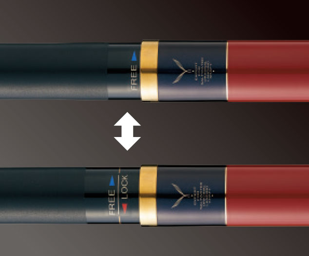 元竿尻栓を外す場合は元上をFREE にしてください。LOCK時の状態は金線が少し見える程度にして下さい。