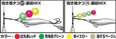 今回登場する連結MIXの特長は、抱き魂タコを複数個連結できること。