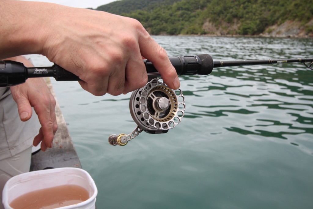また、潮が止まると、底から3mほど上でダンゴを割って、そのタナでステイ。