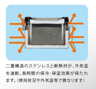 2重のステンレス構造&断熱材でサシエの鮮度をしっかりキープ