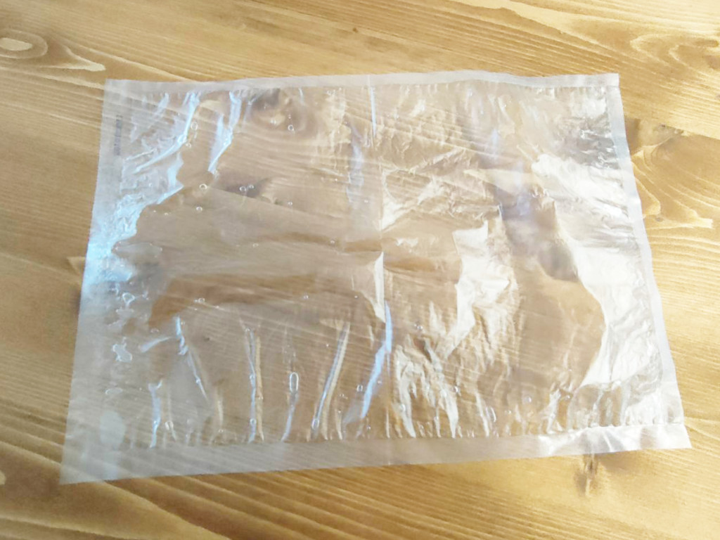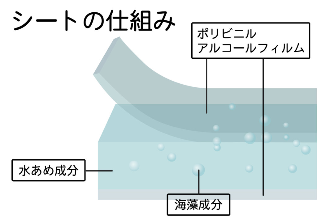 触ってみると、ゼリー状のものが2枚のフィルムに挟まれているのが分かる。これが水あめ成分&海藻成分で、水分や生臭みを除去する