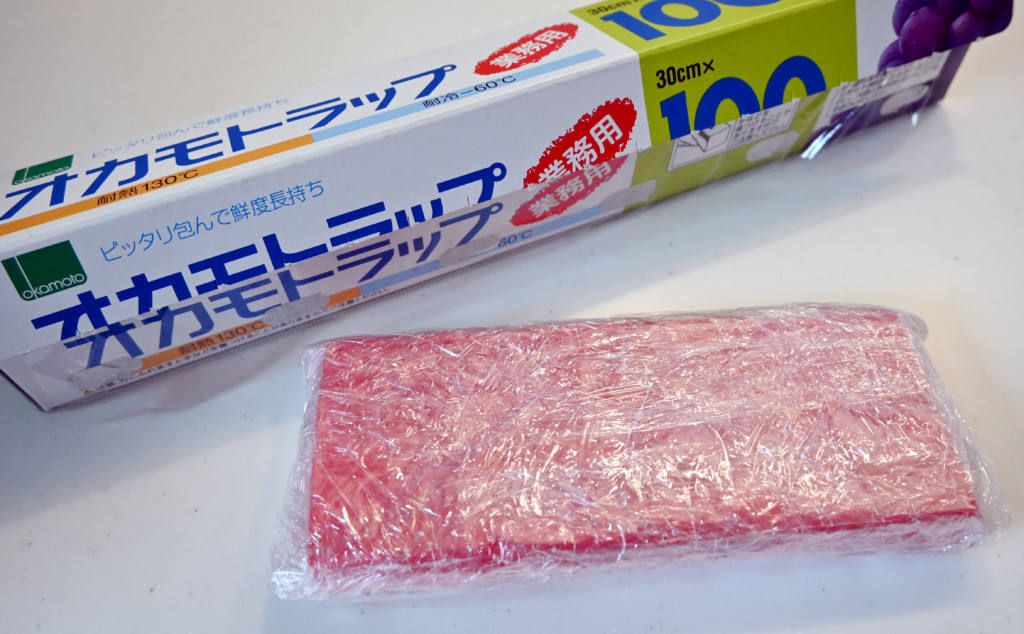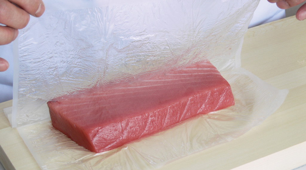 △ピチットで包んだ後のお刺身。包むだけで、水分と生臭みを吸収してくれる優れモノだ