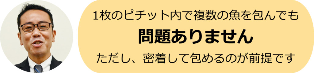続いて質問したのは、1枚のピチット内に入るサイズならば複数匹同時に包んでOKなのか?