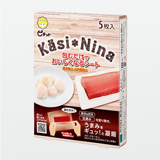「ピチット冷凍用シート」は、包んでから冷凍することで、水分を吸収。いわゆる「ドリップ」を吸収してくれるため、解凍する時に旨みが凝縮された状態となります。