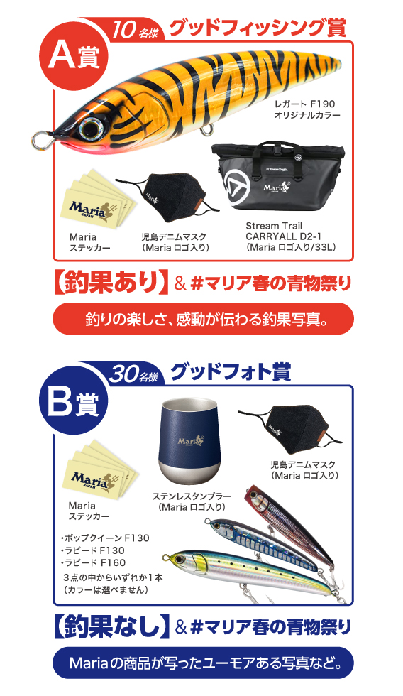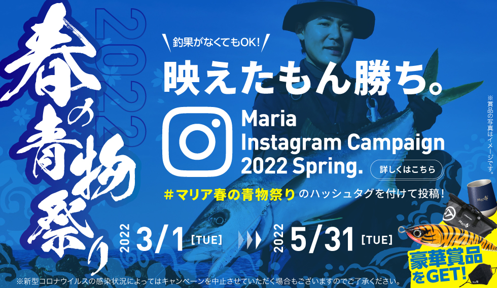 人気ルアーメーカーのマリアでは、春の青物祭りと題してインスタグラムでキャンペーンを開催中。