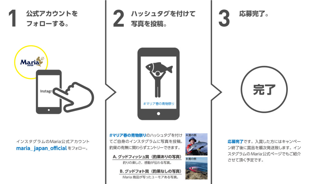 ※釣果はなくてもOKですが、マリアの製品が写真内に写っていることが条件