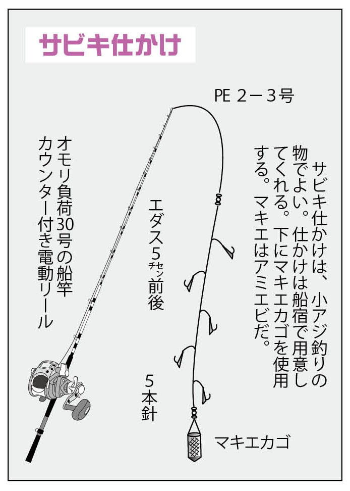 この釣りはまず、エサとなる小アジをサビキ釣りで釣ります。