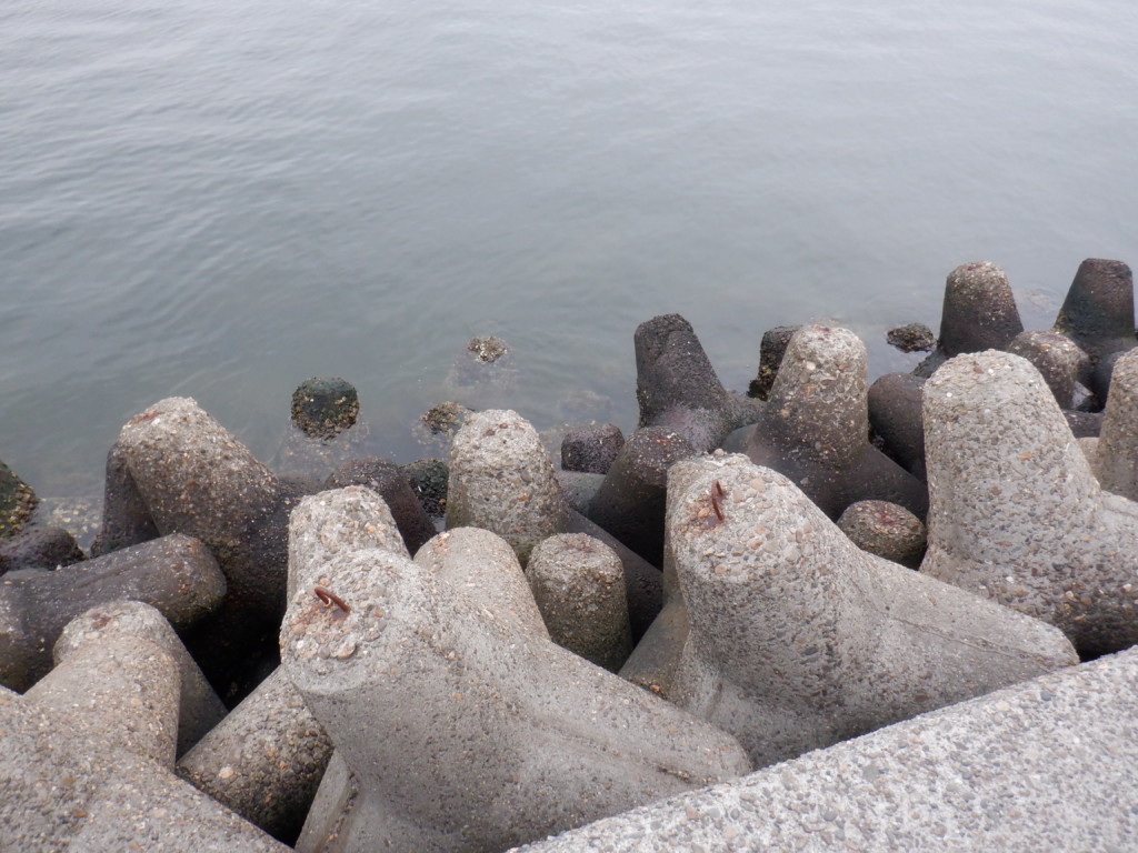 この付近は遠投せずとも、テトラから3~5mの近場で釣れる。水深は浅く、2ヒロ前後といったところ。