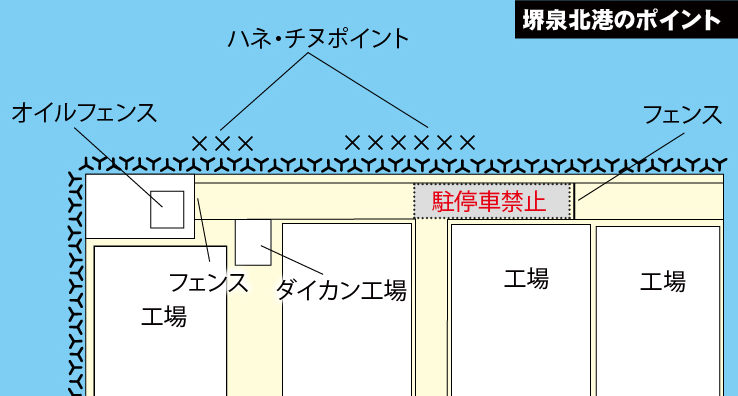 このポイントは、これからが好シーズンなので、日中でもハネ、チヌが狙える。