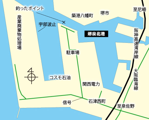 とは言うものの、今は昼に釣れなければ、夜だとばかりに、穏やかな天気の日を選んで、夕方に堺泉北港のダイカン前へ、半夜釣りに出掛けた。