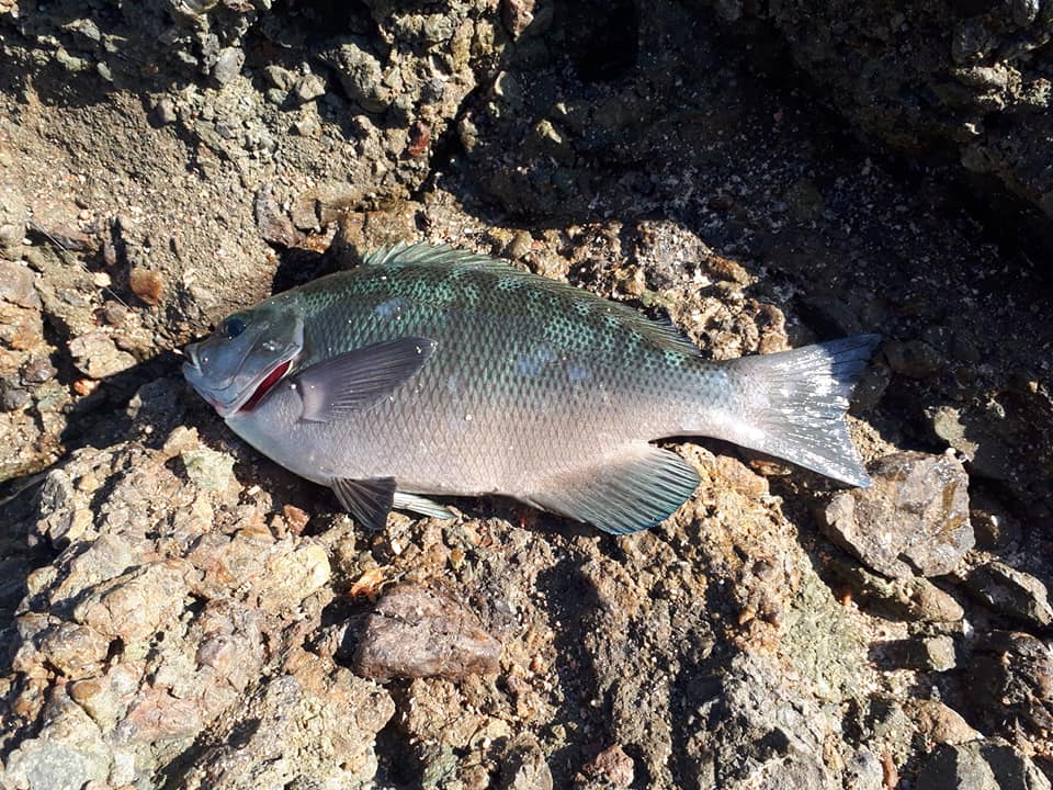 中紀の地磯でチヌが30~45cm主体に、グレは30~40cm主体に釣れていた。