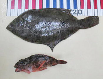 大蔵海岸でガシラ15cm頭に2尾。