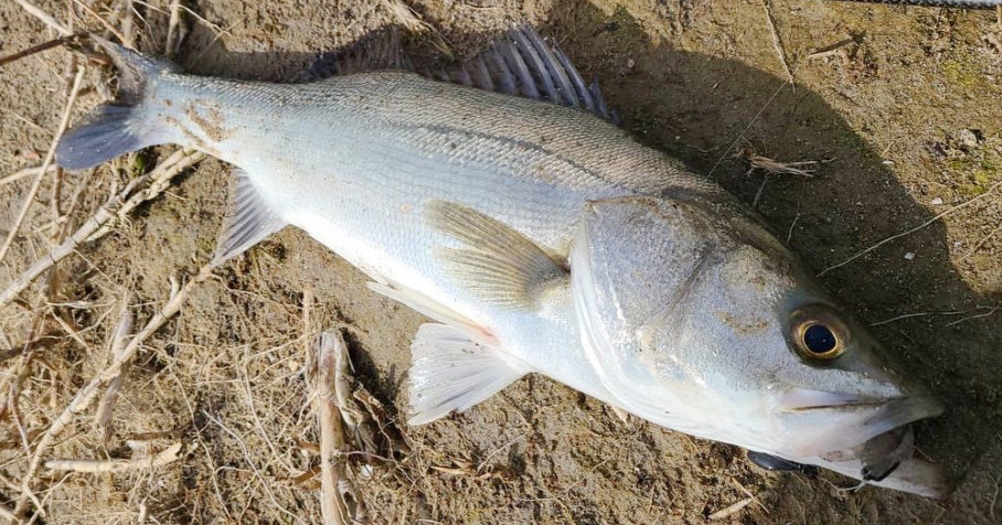 佐野川河口でシーバス50cmをルアーで。