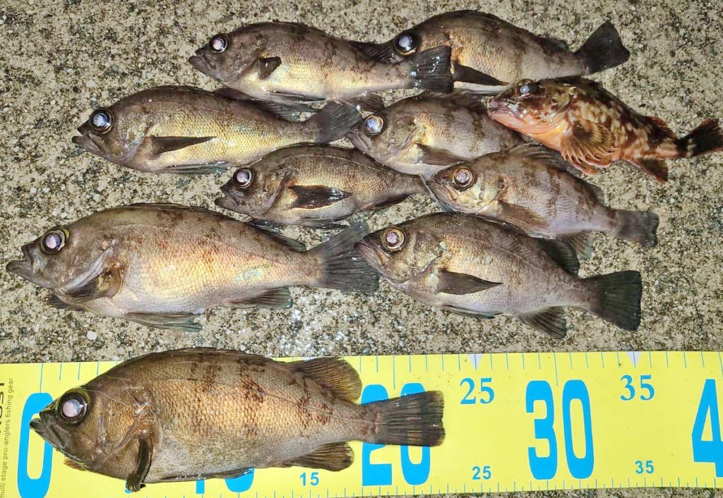 妻鹿漁港でガシラ20cm頭に10尾。