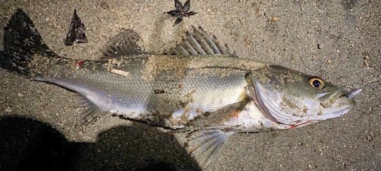 宮津でシーバス40cmをルアーで。