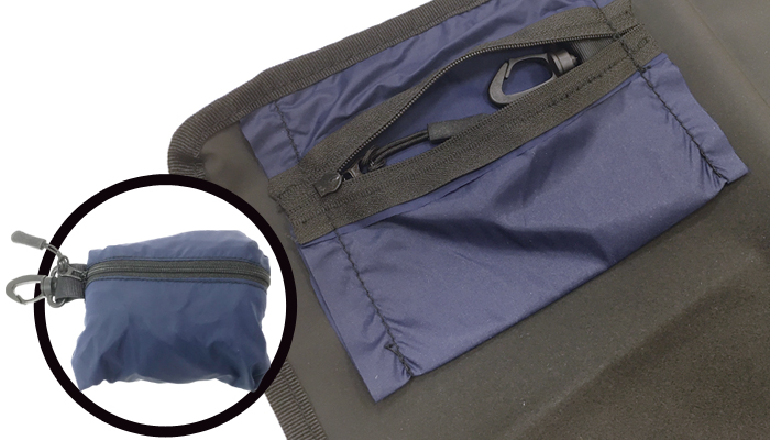 背面には収納ポーチが付いているので、コンパクトに収納することができ、持ち運びに便利です。