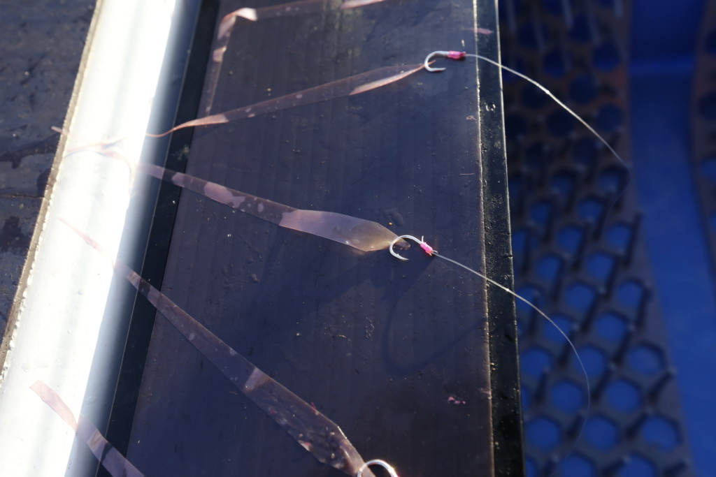 ちなみに、タコやイカの稚魚の場合は毛糸を使用します。