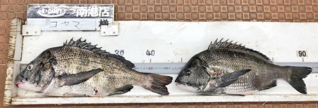 姫路周辺でチヌ50cm頭に4尾。