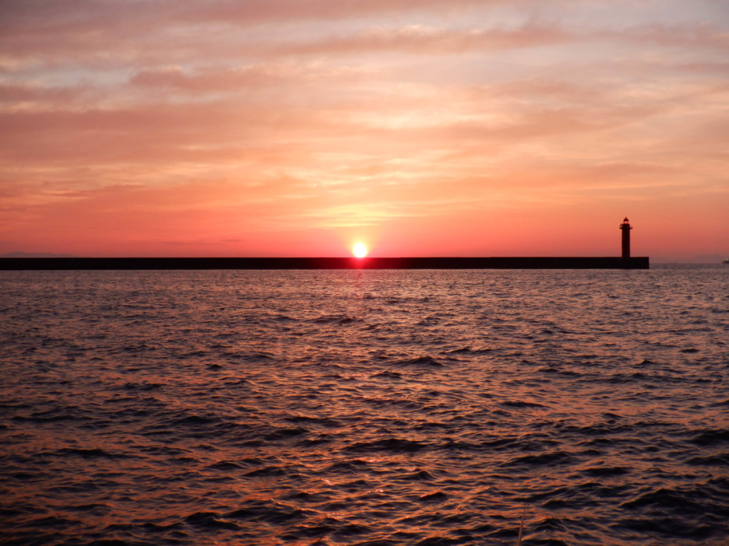 18時45分、前方にある地の一文字に夕日が沈んだ。