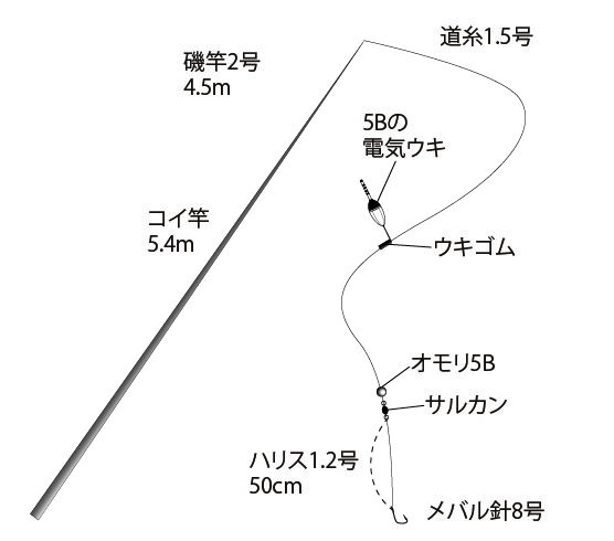 その後、上撒きを3、4回してから、上記の仕かけで、タナは1.5ヒロから釣り始めた。