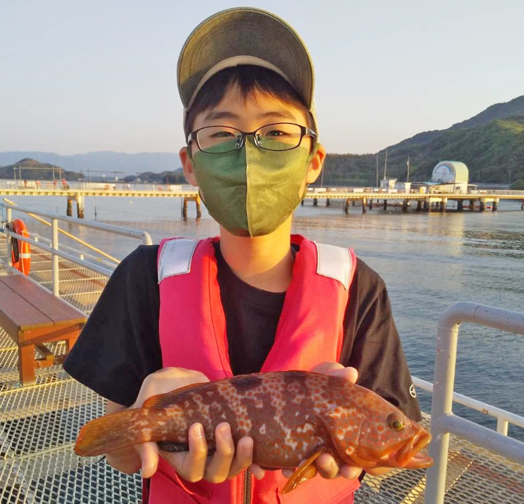 荘内半島周辺でアオリイカ1.1kg、アコウ30cm、シーバス70cm頭に2尾をルアーで。