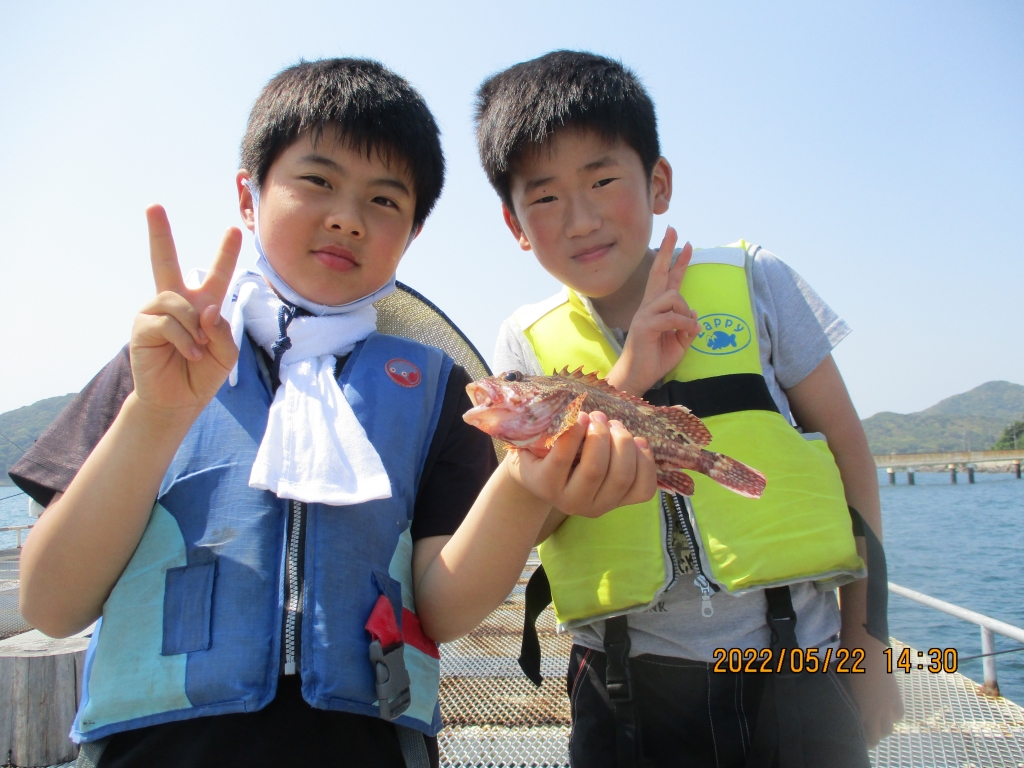 伊予港でメバル20cm頭に5尾、アジ15cm頭に20尾。