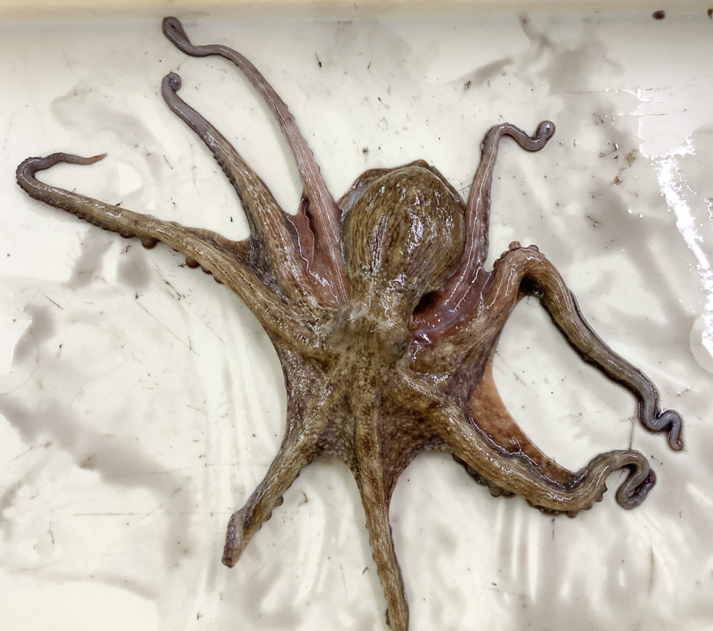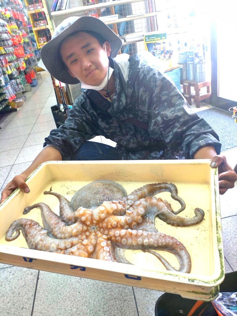 新波止で野寺氏マダコ2220gをタコエギで。