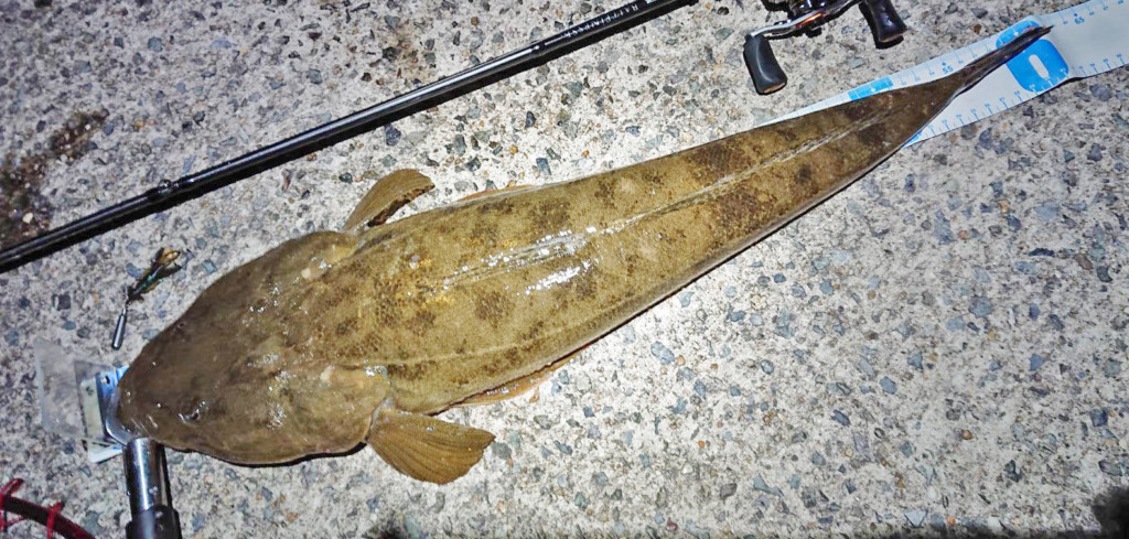 東二見人工島でマゴチ63cm、シーバス69cmをルアーで。