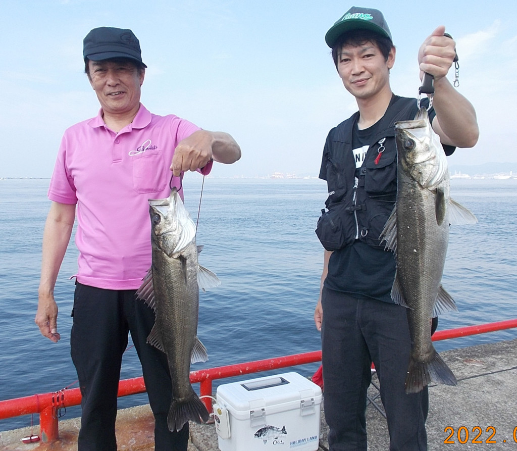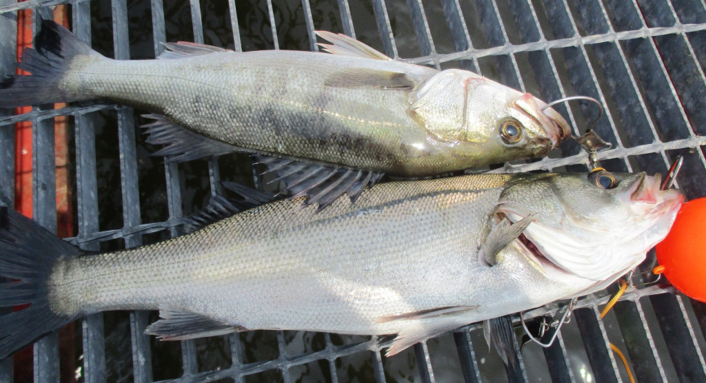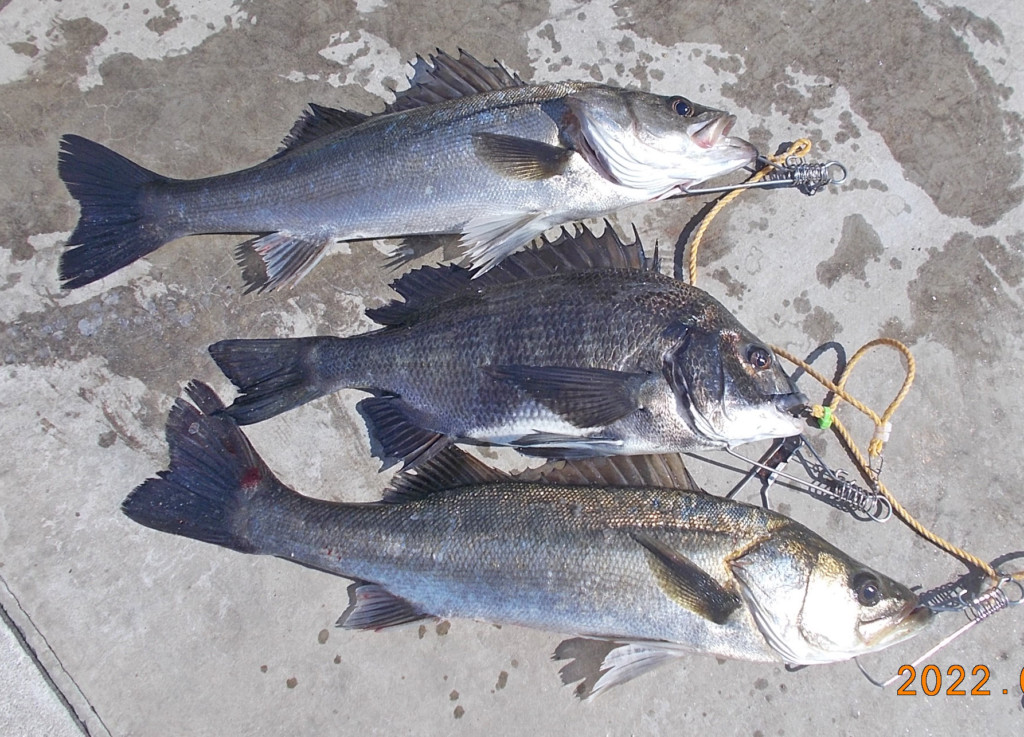 スズキ61cm頭に2尾、ハネ56cm、チヌ35~47.5cm3尾。