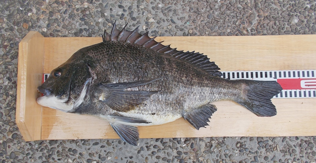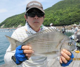 浜田氏チヌ45cmと小ダイ1尾にメバル3尾。