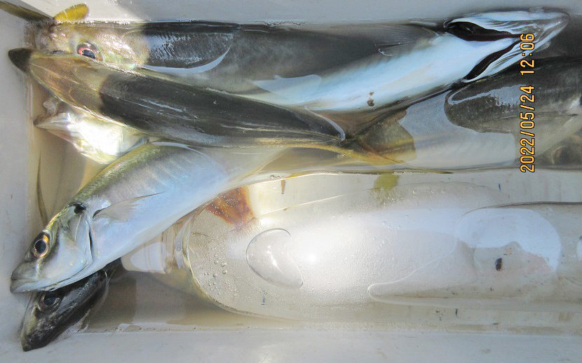 山本氏ハネ47cmと41cm、そのほか、サッパ15cm頭に60尾、イワシ14cm頭に30尾。
