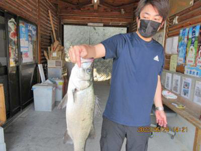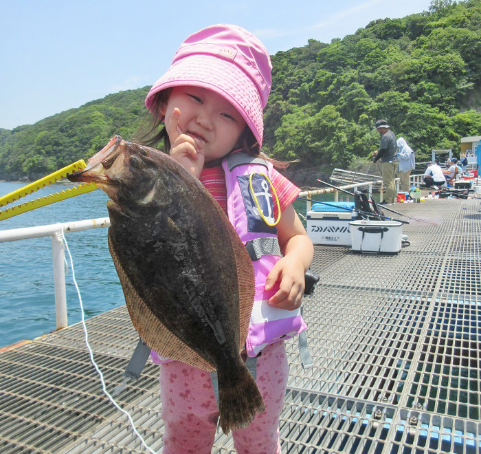 筏5と通路5でアジ25cm頭に17尾、筏4でヒラメ38cm、筏5でマダイ57cm、通路7でキビレ55cm。