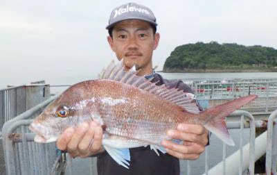 宇佐川氏マダイ70cmと60cm、山見氏マダイ41cm頭に2尾とチヌ50cm頭に2尾、岩脇氏マダイ30~50cm4尾。