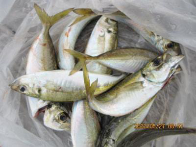 尾山氏イワシ10~13cm50尾、そのほか、スズキ69cm頭に2尾、チヌ30cm頭に2尾、イワシ合計6500尾、サッパ18cm頭に250尾、アジ27cm。