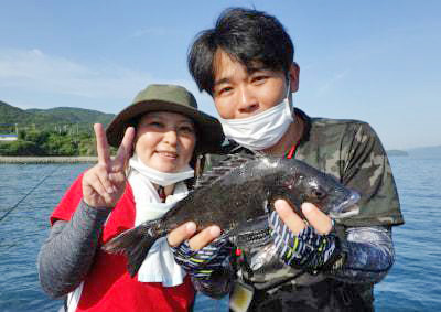 安田氏ウマヅラハギ37cm、坂田氏グレ22cm。