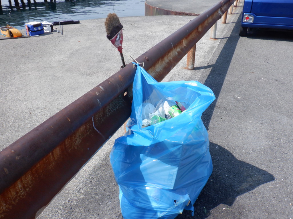▲釣り場には、大きなゴミ袋にホウキまで置いてある