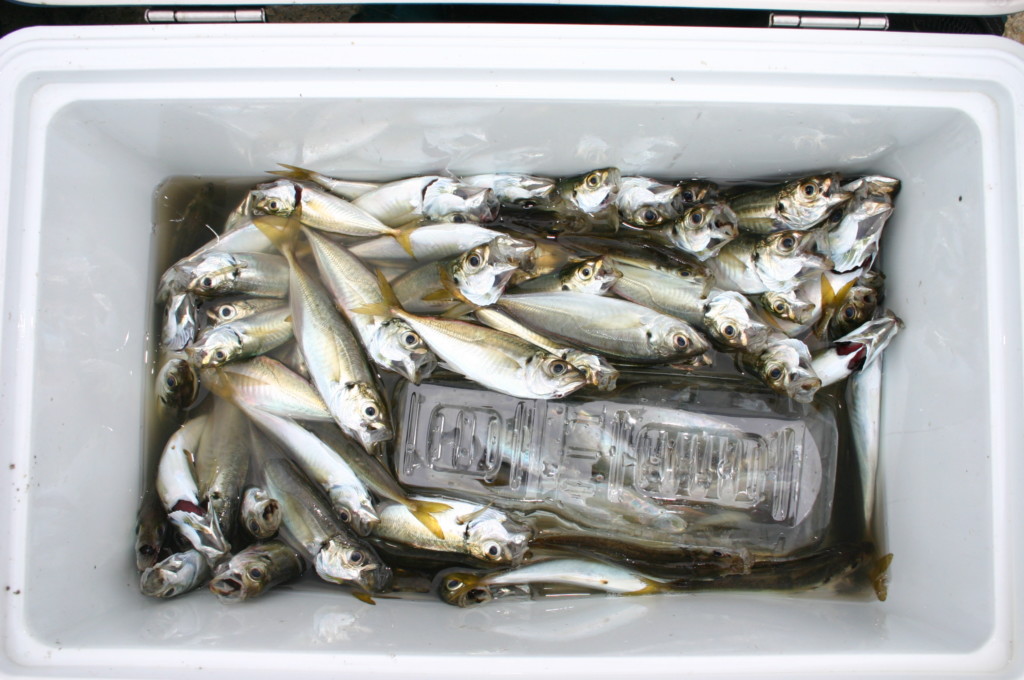 厳寒期はさすがに釣り物が少なく、チヌ、ハネ、根魚ぐらいだが、春から秋の好シーズンには、前述のほか、イワシ、アジ、サバ、グレ、タチウオ、サヨリ、ハマチなどの青物も釣れる。